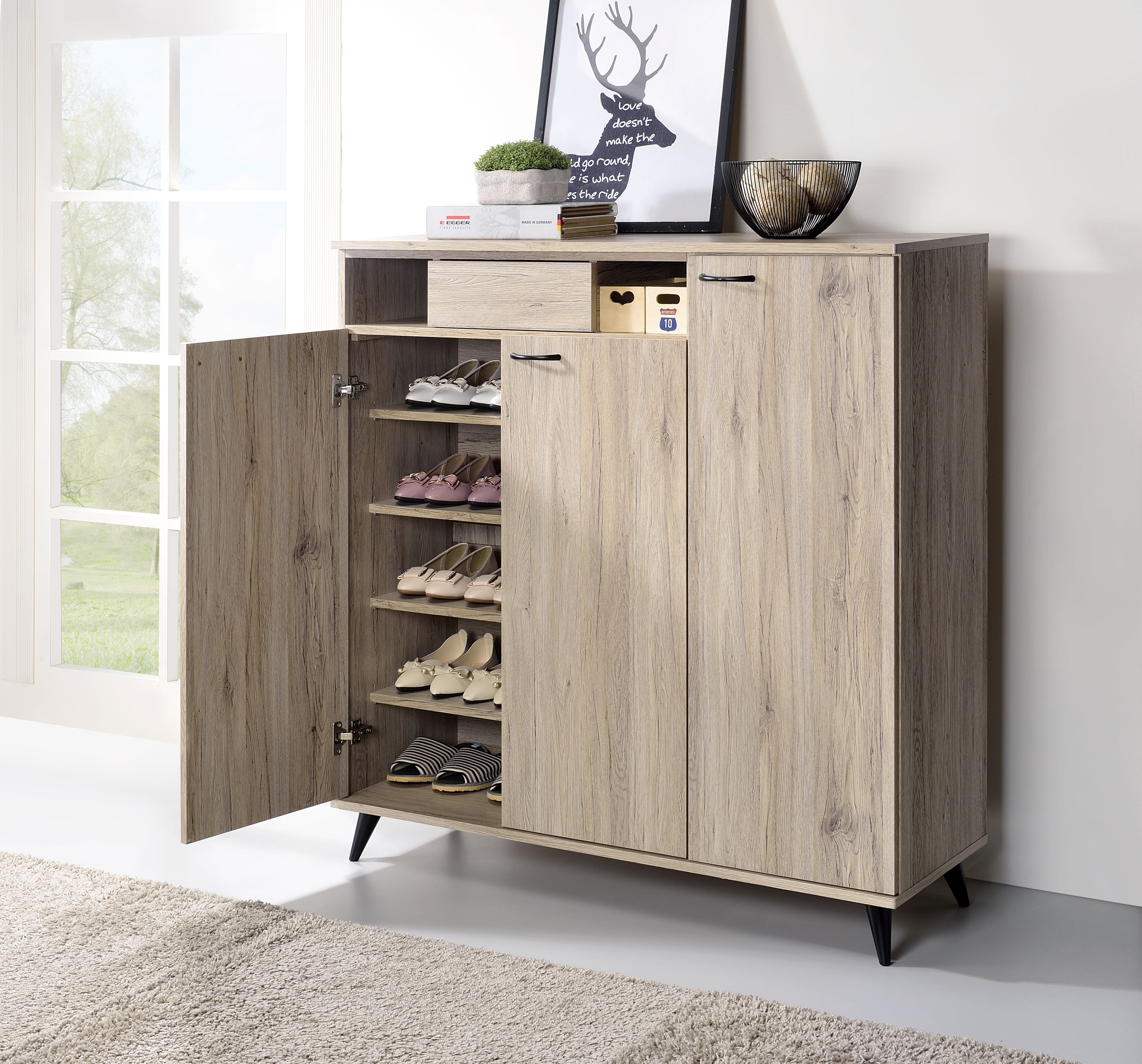 Some product images may show multiple products, but the SKU itself only contains what is mentioned in the product title.Usually an SKU contains only one product. If you're in doubt, please contact store customer service to confirm.Due to the quick turnover of product inventory, please consult store customer service to confirm inventory for large purchases. Country : China(Taiwan)Include : Cabinet * 1Product Size : 47" x 16" x 50"HSeat Size : -Assembly Required : YesStyle : ScandinavianRomance : : Product Details : Rectangular Cabinet : Storage: 1 Drw & 2 Open Compartments, 3 Doors (Inside 5 Compartments, 4 Wooden Shelves, Adj) : Wooden Case: Natural Rustic Finish : Plastic Splayed-Tapered Leg: Black Finish (Powder Coating)Color : NaturalMaterials : Plastic (PVC Leg), Melamine Veneer (Paper), PBStorage : 1 Drw & 2 Open Compartments, 3 DoorsStorage & Clearance Dimensions : Clearance under the base: 4 InchesNW CTN (LBS) : 99Estimated Weight Capacity... Read more