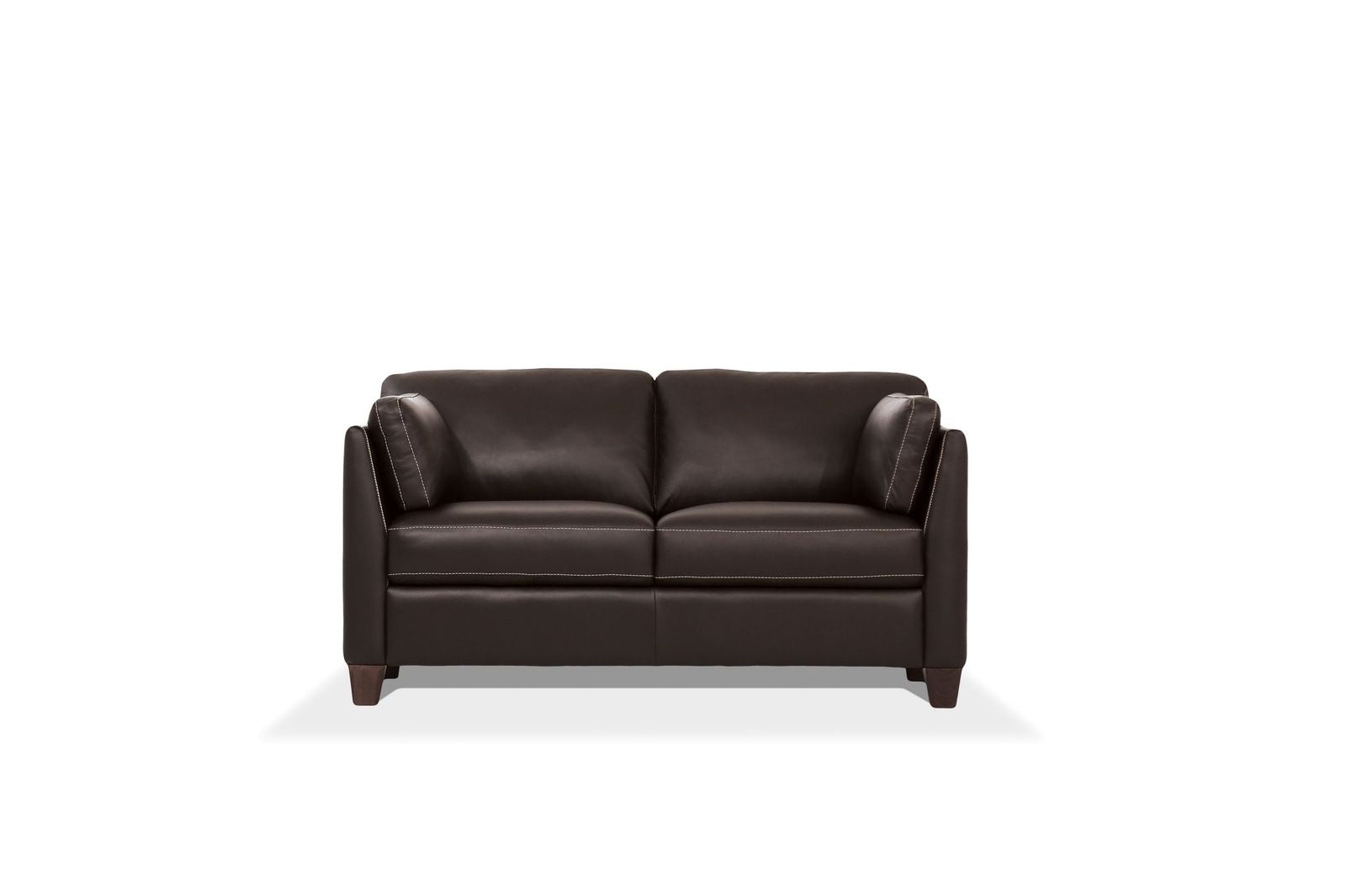 Some product images may show multiple products, but the SKU itself only contains what is mentioned in the product title.Usually an SKU contains only one product. If you're in doubt, please contact store customer service to confirm.Due to the quick turnover of product inventory, please consult store customer service to confirm inventory for large purchases. Country : ItalyInclude : Loveseat * 1Product Size : 59"L x 34"D x 31"HSeat Size : 21"D x 19"HAssembly Required : NoStyle : ContemporaryRomance : : Product Details : Assembled, Loose Back & Tight Seat Cushion (2+2) :: CONSTRUCTION :: SEAT: Webbing; Inside Frame: Wood, Contrast Tone Stitching, Box Cushion : BACKREST: Tight Cushion : ARMREST: Sloped Style (Tight Pillow), Arm Size: 5 Inches : Wooden Block LEG: Dark Walnut Finish; Leg Size: 5 Inches ::: Material: Leather (Solid Pattern)Color : Chocolate LeatherMaterials : Leather, Frame: Wood (), Foam (30s)Storage : NO StorageStorage & Clearance... Read more